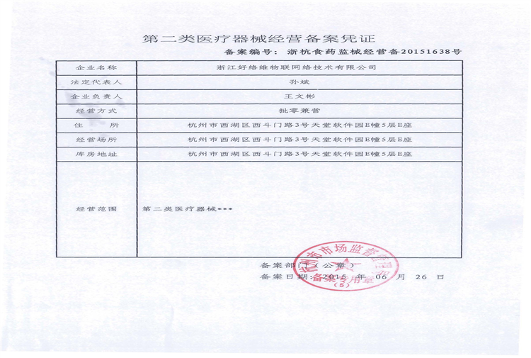 二類醫療器械經營備案憑證